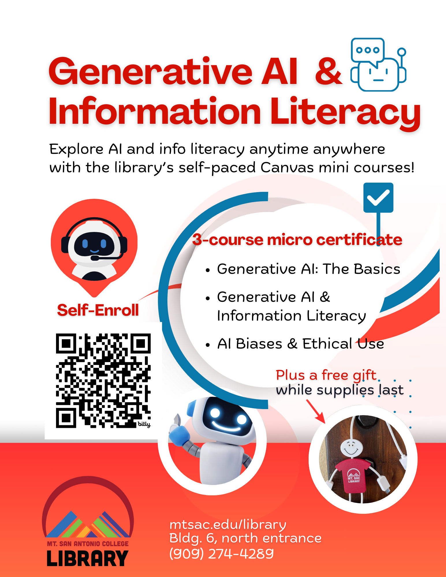 Sign up for library workshops to enhance your research skills, in-person, live on zoom, or self-paced in Canvas.