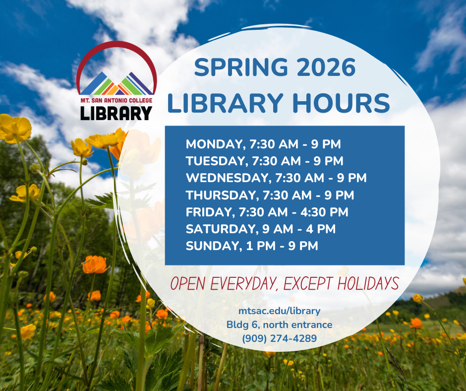 Welcome to Spring 2026! The library is open everyday, except holidays: