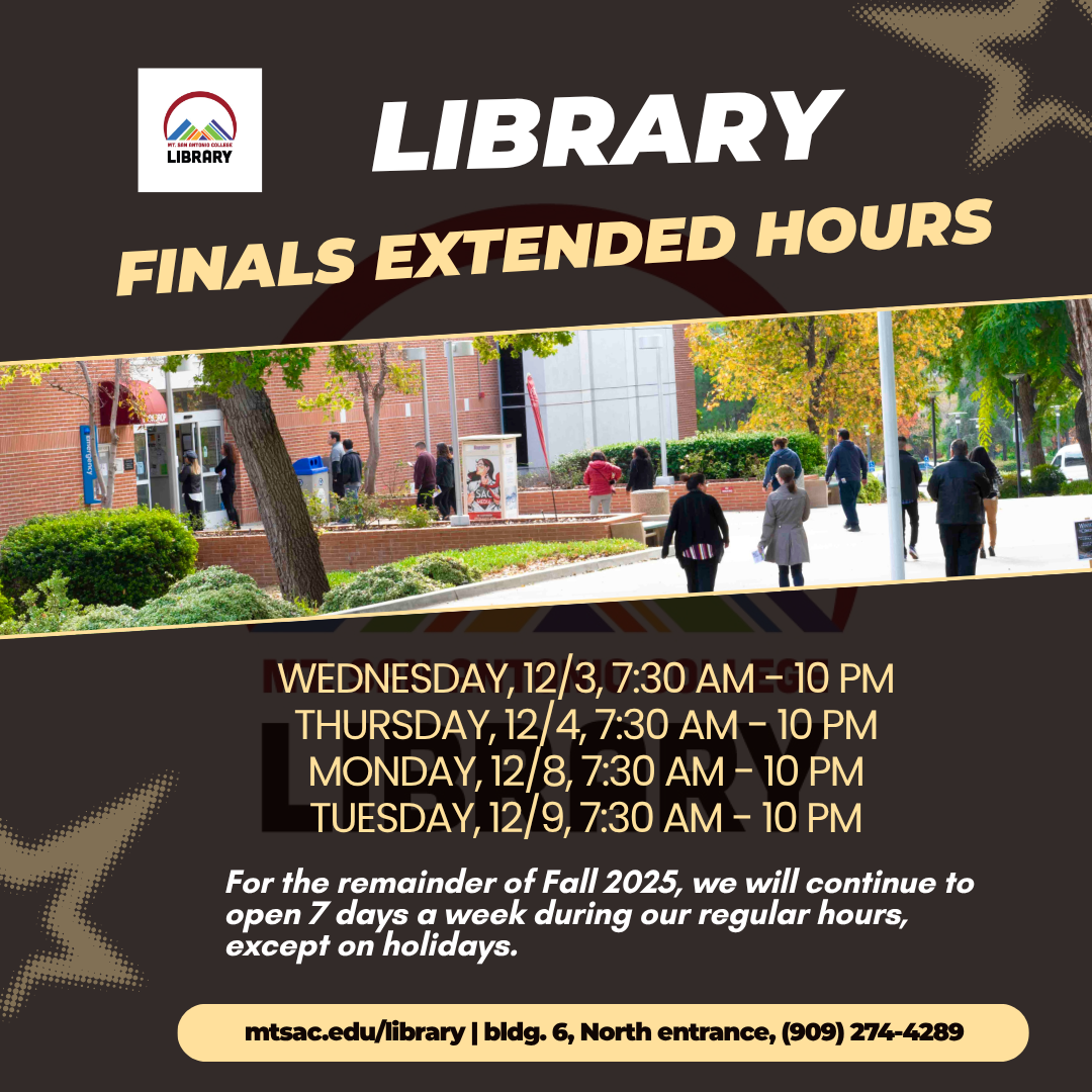 Information Desk: (909) 274-4289 Building 6, North entrance | Contact us